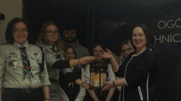 Betlejemskie Światło Pokoju dotarło także w progi ZSOiT w Wojkowicach. Życzenia świąteczne wraz z tegorocznym przesłaniem: „Pielęgnuj dobro w sobie”, na ręce Pani Dyrektor Justyny Pitas, złożyli harcerze z Hufca ZHP…