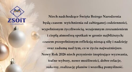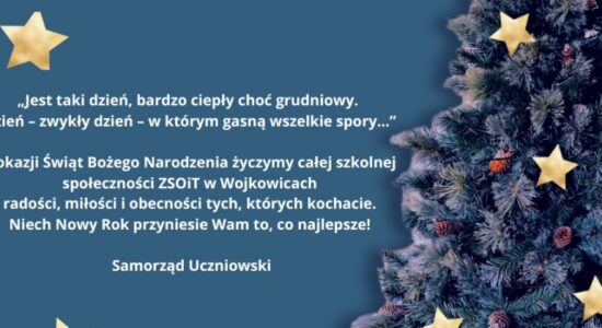 Świąteczna atmosfera, klasowe spotkania, choinka, pyszne jedzenie, życzenia, prezenty i wspólnie spędzony czas – tak przygotowujemy się do świąt w ZSOiT w Wojkowicach