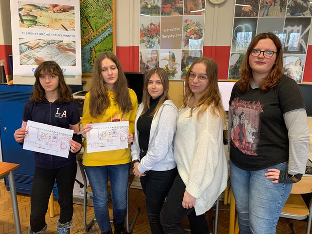 W piątek gościliśmy uczennice ze Szkoły Podstawowej nr 3 w Wojkowicach. Wizyta była związana z projektem „Ekopracownia pod chmurką”, do którego pragnie przystąpić SP 3. Uczennice technikum architektury krajobrazu pomagały swoim młodszym koleżankom stworzyć ciekawy projekt zagospodarowania terenu mieszczącego się przy ich szkole. Nasze architektki pokazały różne narzędzia przydatne w pracy nad projektem i czuwały nad realizacją wizualizacji terenu przy wykorzystaniu programu komputerowego. Dziękuję moim uczennicom: Karolinie Buchajczyk, Magdzie Gwóźdź oraz Karolinie Szymańskiej za pomoc w realizacji zajęć.