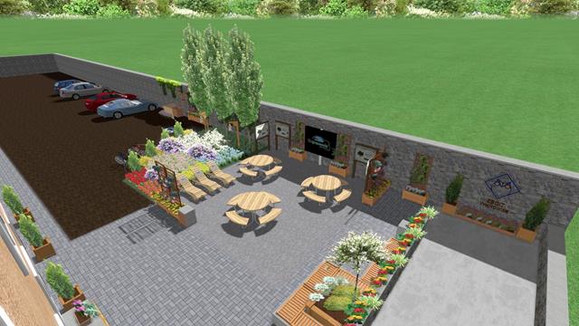 Projekt zagospodarowania terenu przed wejściem do budynku wykonali uczniowie klas trzecich i czwartych, kształcący się w zawodzie technika architektury krajobrazu w Technikum im. rtm. Witolda Pileckiego w Wojkowicach pod kierunkiem nauczyciela przedmiotów zawodowych.