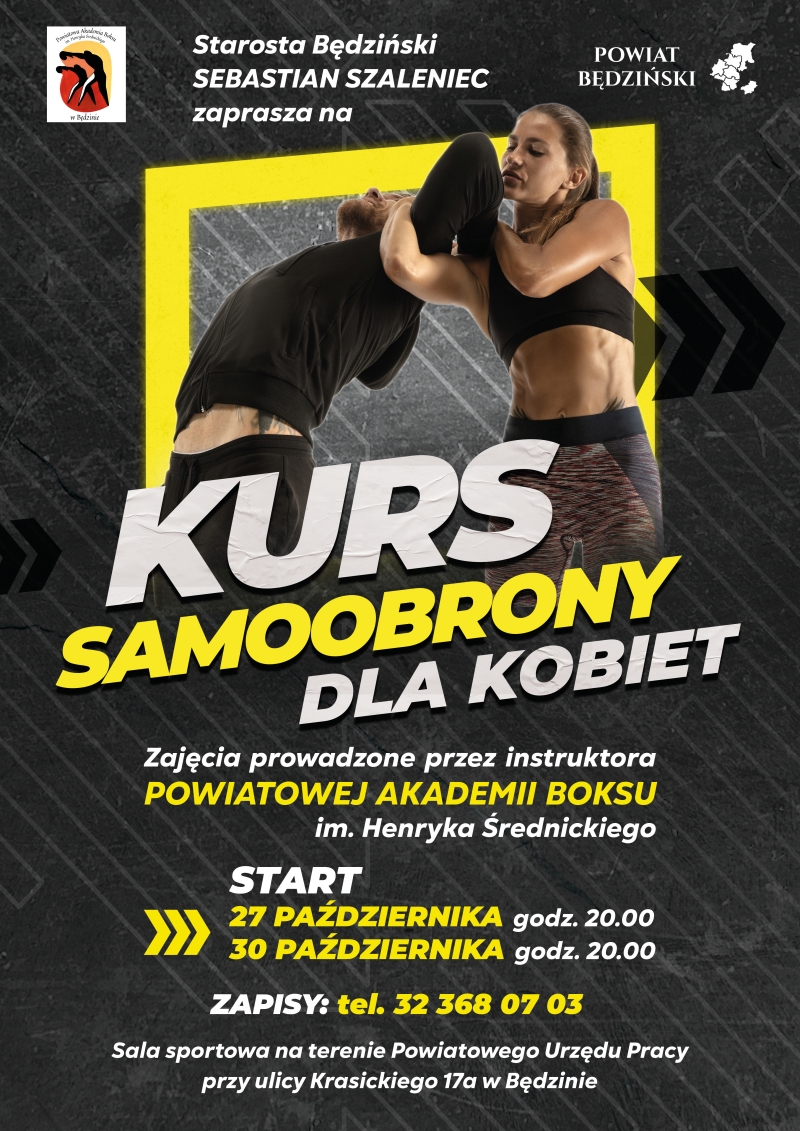 Starosta Będziński Sebastian Szaleniec zaprasza na KURS SAMOOBRONY DLA KOBIET !