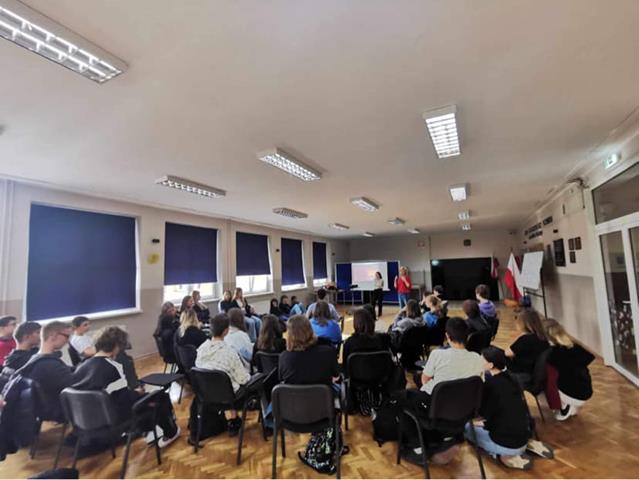 Pierwsze spotkanie członków Klubu Integracji Europejskiej z nowym Wolontariuszem Miguelem Bars Barba za nami. Miguel jest wolontariuszem Polskiej Fundacji im. Roberta Schumana w Warszawie i będzie do końca roku szkolnego realizował swój projekt w ramach Europejskiego Korpusu Solidarności. Tym razem jednak to uczniowie przybliżyli Miguelowi działalność Klubu, opowiedzieli w dużym skrócie o Polsce. Wszyscy uczestnicy spotkania zastanawiali się również nad planami Klubu na najbliższe miesiące. Była to też okazja, aby poznać się lepiej, bo do Klubu dołączyło sporo pierwszaków.