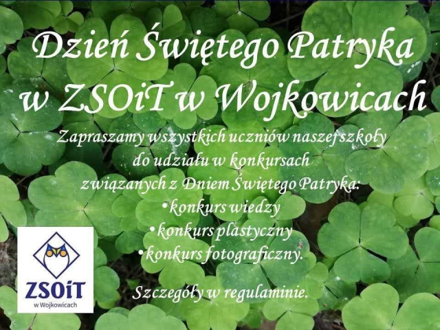 1. Dzień Świętego Patryka w ZSOiT jest zorganizowany okazji obchodów Saint Patrick`s Day w Irlandii.