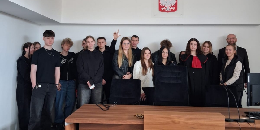 Uczniowie 3b LO o ukierunkowaniu policyjno-prawnym na rozprawach z zakresu prawa karnego w Sądzie Rejonowym w Czeladzi w ramach programu Dnia Edukacji Prawnej
