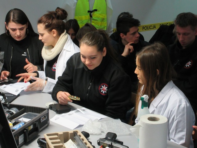 Uczniowie klas drugich na warsztatach z kryminalistyki