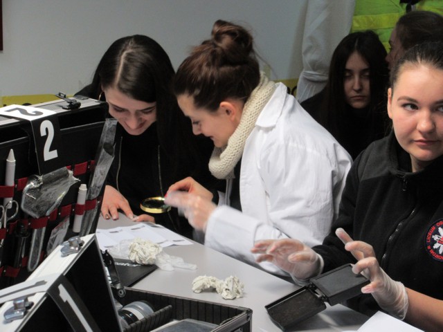 Uczniowie klas drugich na warsztatach z kryminalistyki