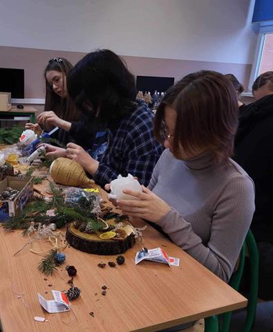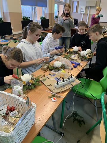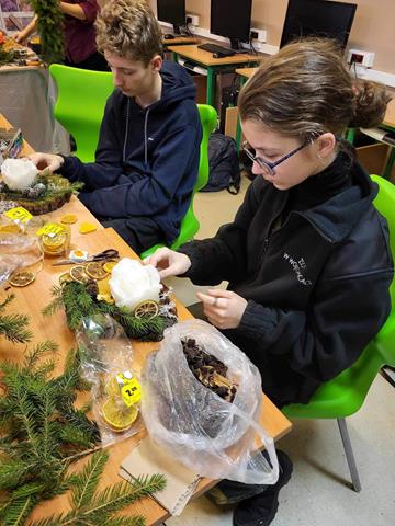Święta Bożego Narodzenia to wyjątkowy czas. Aby podkreślić ich atmosferę uczniowie klasy 1TA pod fachowym okiem pani Aleksandry Błaszczyk i pani Moniki Prostackiej nabywali umiejętności wykonywania kompozycji bożonarodzeniowych, między innymi wspaniałych wianków, stroików i świątecznych choinek. Z kolei Nicola Słania z kl. 4T oraz uczennice z kl. 2T pogłębiały wiedzę na temat wykonywania dekoracji z materiałów takich jak gałązki, szyszki, orzechy, mech, bombki, wstążki i inne ozdoby.
