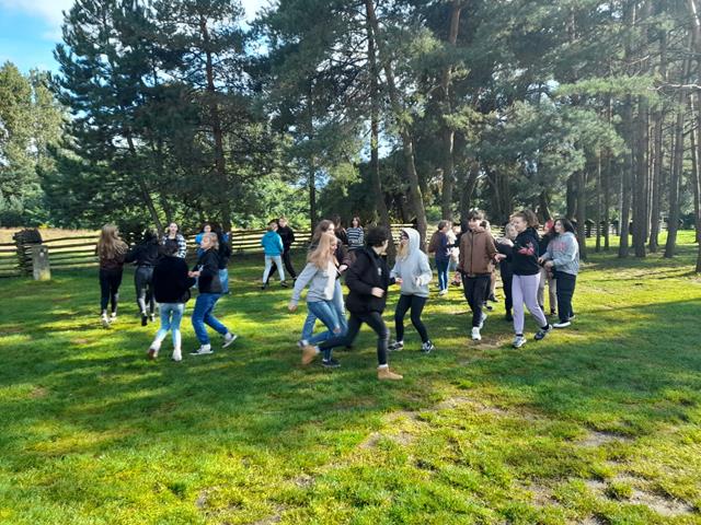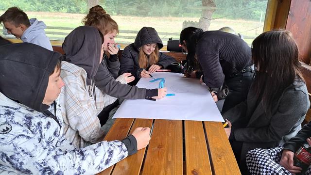 Wyjazd integracyjny klas I b, I c, I d LO. Pomimo zimna i przelotnego deszczu humory dopisują! Bawimy się, rysujemy, tańczymy i oczywiście przede wszystkim poznajemy!